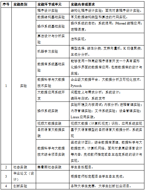 (3)专业能力:要求具有从事数据科学与大数据技术领域的技术开发和应用服务的专业素质,具有一定的创新和创业意识。