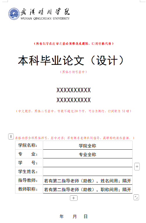 8.指导学生按《武汉晴川学院本科生毕业论文(设计)书写印制规范》要求撰写和提交毕业论文(设计)。