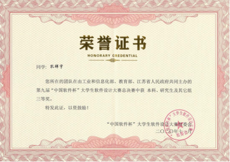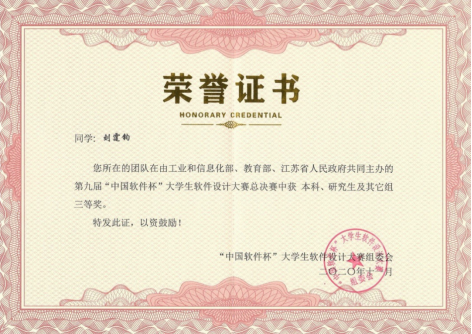 由伟德体育罗剑老师指导的孔祥宇、刘霆钧两名同学组成的“T.C”团队选择了赛题“基于深度学习的企业实体识别”,该赛题受到很多参赛选手的青睐,竞争异常激烈。赛题涉及大数据、人工智能、计算机视觉等前沿技术,需要学生对相关知识充分理解,并找到合适的技术路线。经过不断地设计与开发,以及多天的设备调试与项目优化,“T.C”团队最终取得了三等奖的好成绩。