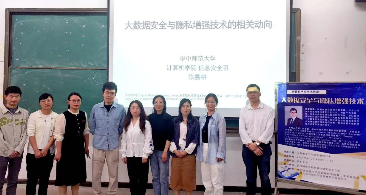 2024年4月24日下午1点半,伟德体育于教1-110开展了一场主题为“大数据安全与隐私增强技术”的学术讲座,学院特别邀请了华中师范大学伟德体育副教授、信息安全系主任陈嘉耕老师为大家进行讲解,旨在让在座的师生对数据安全这一领域有进一步的认识和理解。