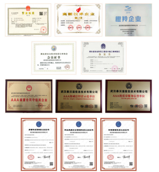 公司具备电子与智能化、机电安装工程专业承包、输变电工程专业承包、消防设施工程专业承包、安全防范工程设计施工等相关资质。先后获得国家级高新技术企业证书、ISO9001质量管理体系认证、ISO14001环境管理体系认证、OHSAS18001职业健康安全管理体系认证。此外,还被评为AAA级中国信誉企业、AAA级重合同守信用企业、瞪羚企业、AAA级质量服务信誉单位和AAA级诚信经营示范单位。