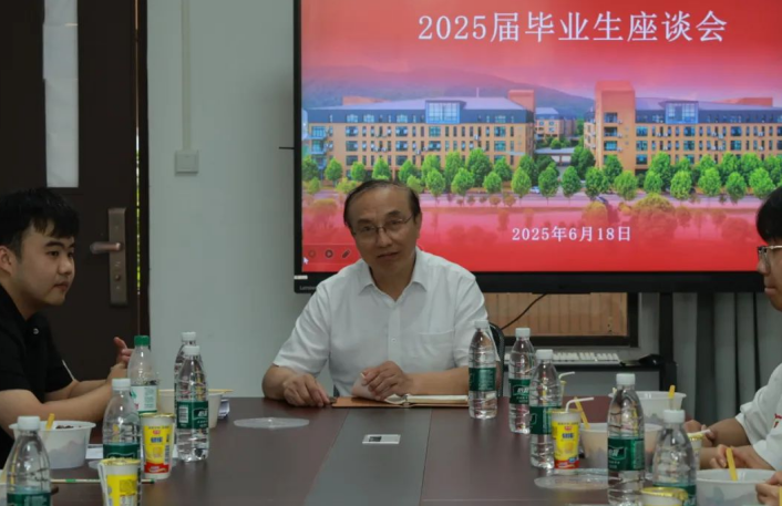 随后,进入交流环节。毕业生代表们纷纷打开话匣子,就学院建设提出了自己的看法和建议。有同学提到,希望图书馆能进一步优化环境,比如在夏季加强制冷效果,为同学们提供更舒适的学习空间;还有同学建议学院为考公的同学提供更多针对性的帮助,包括开设相关讲座、提供学习资料等。对于同学们提出的每一个问题和建议,院长和书记都认真倾听,并不时做着记录。院长黄传河对同学们的建议一一做出回应,表示学院一直致力于为学生提供更好的学习和生活条件,会充分考虑大家提出的建议,并在后续教学工作中尽力落实。对于已经做得较好的方面,会继续保持;存在不足的地方,一定会加以努力改进。同时,他也对同学们关心学院发展、积极建言献策表示衷心感谢。