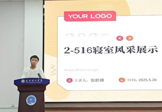 第三位是2 栋 - 516 寝室的代表,采用 PPT 和 Vlog 相结合的形式,全方位展示了他们和谐有序的寝室生活。通过生活中的点滴片段,如日常的学习交流、休闲娱乐等,勾勒出了一幅充满阳光与温馨的生活篇章,让大家看到了一个积极向上、团结友爱的寝室集体。