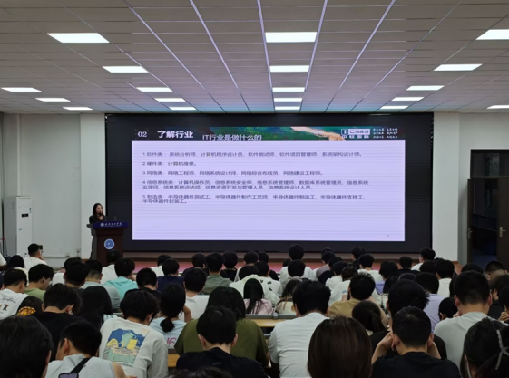 在当今数字化飞速发展的时代,IT行业已成为推动社会进步的重要力量。无论是软件开发、硬件制造,还是网络技术、信息安全,IT行业都蕴含着无限的机遇与挑战。为了帮助同学们更好地了解IT行业,规划未来的职业道路,我们特别邀请了陈佩老师,为大家带来了一场精彩的讲座。本次讲座由伟德体育团总支书记余延旺老师主持,伟德体育全体大三学生聆听本次讲座。
