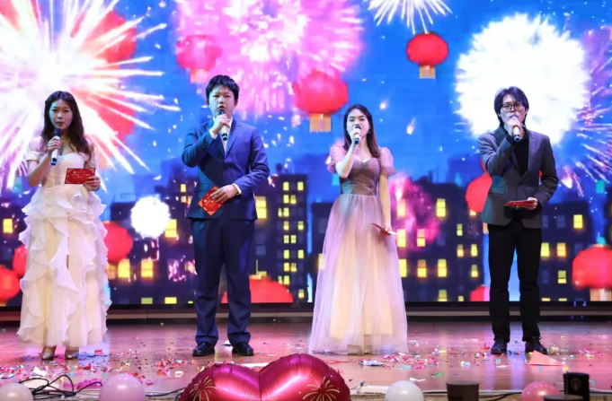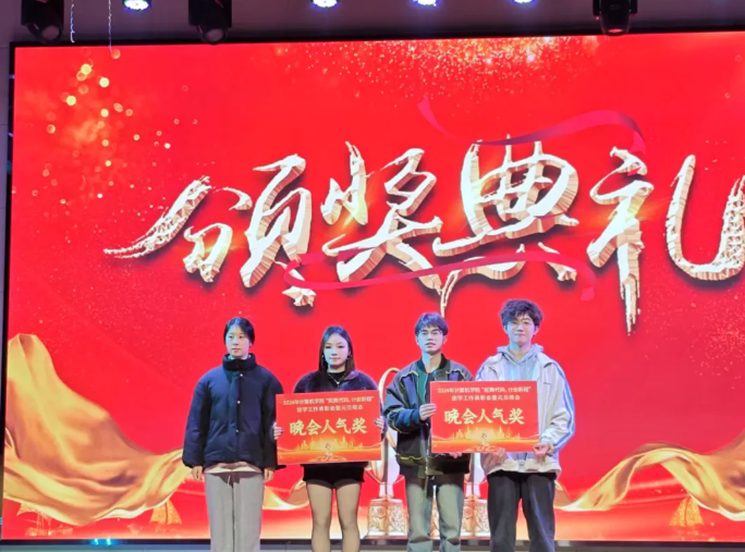 帷幕拉开之际,四位主持人款款而来,宣布伟德体育2024年团学工作表彰会暨元旦晚会正式开幕!