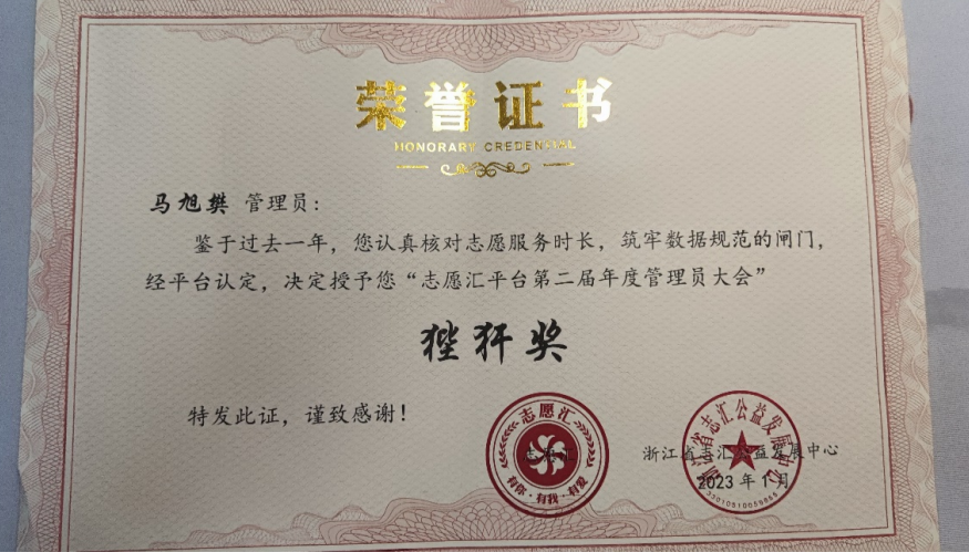 志愿者颁发的狴犴奖,意在表彰2022年度志愿汇扣减违规时长数量最多的前80名志愿汇管理员。据悉,2022年度,武汉晴川学院伟德体育团总支秘书部部长马旭樊在院团总支的指导和带领下,发起大大小小的志愿服务活动20余项,并在活动中认真审核每位志愿者的志愿服务时长,对于一些莫名的参与者“蹭”的时长予以果断的删除。在马同学的带领下,秘书部慧眼识珠,识破志愿服务虚伪的种种假象,筑牢志愿服务时长规范的闸门,给伟德体育志愿服务活动营造了一种风清气正的良好氛围。