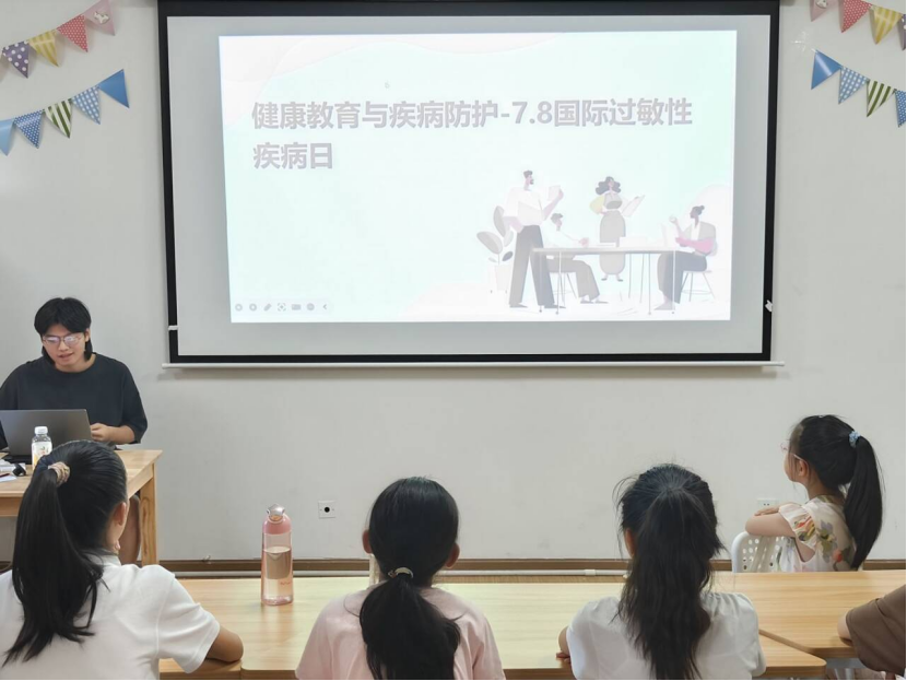 课程伊始,许老师便巧妙地设置了一系列趣味问答,通过轻松愉快的互动方式,迅速激发了孩子们对过敏性疾病的好奇心。他鼓励孩子们大胆提问,每一个疑惑都成为了探索知识的起点,让整个课堂洋溢着求知的气息。许老师不仅深入浅出地概述了过敏性疾病的奥秘,还巧妙阐述了健康教育在预防此类疾病中的不可替代作用,让小朋友们对这一领域有了初步而全面的认识。
