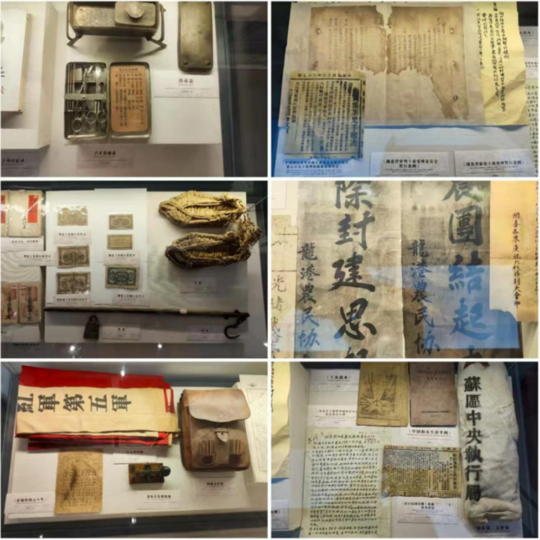 沿着楼梯缓缓拾级而上,来到二楼,红色文化的气息如春风般轻柔却又炽热地扑面而来,带着激昂的旋律与澎湃的力量。这里陈列的一件件展品,就像一颗颗璀璨的星辰,镶嵌在历史的浩瀚天空中,闪耀着永恒的光芒,照亮了阳新革命的峥嵘岁月。珍贵的历史照片中,人物的眼神坚定而执着,仿佛在向我们传递着为了理想和信念永不言弃的精神;泛黄的文件,字里行间透露出那个时代的风云变幻,革命先辈们的坚定决心如钢铁般坚硬;实物展品更是触手可及的历史温度,让我们仿佛穿越到了那个战火纷飞的年代。耳边似乎响起了激昂的号角声,眼前仿佛浮现出先辈们为了民族的独立和解放,前赴后继、奋勇杀敌的壮烈场景。这种红色精神的洗礼,如同一股清泉,滋润着我们干涸的心灵;又似一团火焰,点燃了我们内心的热血与激情,让我们深刻体会到今天的和平与幸福是无数先烈用鲜血和生命换来的,也让我们对这片土地上的英雄们肃然起敬,心生无限缅怀。