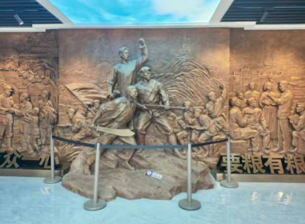 步入展厅,首先映入眼帘的是一组栩栩如生的人物雕塑。他们身着破旧的军装,眼神中却闪烁着坚定的光芒,有的手持武器冲锋在前,有的俯身与群众亲切交谈,生动再现了当年革命战士们与龙港人民鱼水情深、共同抗敌的感人场景。旁边的展柜里,摆放着锈迹斑斑的步枪、手榴弹,还有战士们用过的水壶、蓑衣。这些看似普通的物品,背后都承载着无数惊心动魄的战斗记忆。那把步枪的枪口仿佛还残留着硝烟的味道,仿佛在向我们诉说着战士们在战场上浴血奋战、奋勇杀敌的激烈场面;那件蓑衣上的每一个补丁,都见证了革命先辈们在艰苦的环境中,依然坚守信念、不屈不挠的精神。