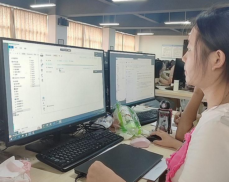 四周的实习尽管短暂,但是对于同学们来说却是收获满满。不少同学表示,不仅在专业知识和技能上得到了显著的提升,还在个人成长和团队协作方面有了全新的认识。在实训过程中,同学们有机会将课堂上学到的理论知识应用到实际操作中。在这个过程中,同学们深刻体会到了团队协作的力量,每个成员都有自己的专长和优势,通过相互合作、交流和分享能够取长补短,共同攻克一个又一个难关。21级计科专业马梓杰同学表示:“这次实训对我的个人成长也是一次极大的促进,面对各种挑战和压力,我学会了如何保持积极的心态,勇敢地面对未来的困难和挫折。”