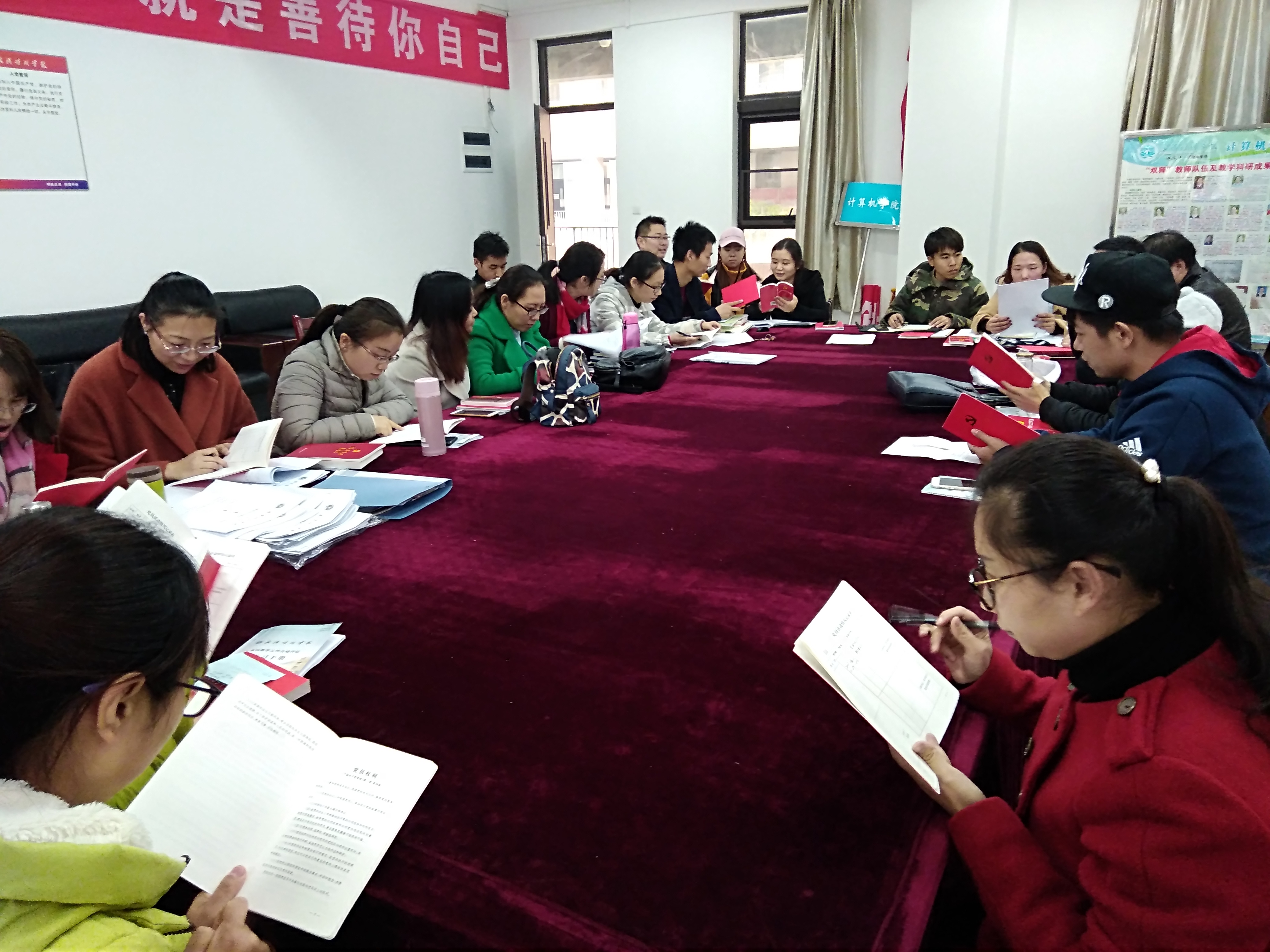 2017年11月29日下午3点,我院党总支副书记岳逸飞在综二306会议室主持召开了关于党的十九大报告的学习会议。全院教职工党员参加了会议。