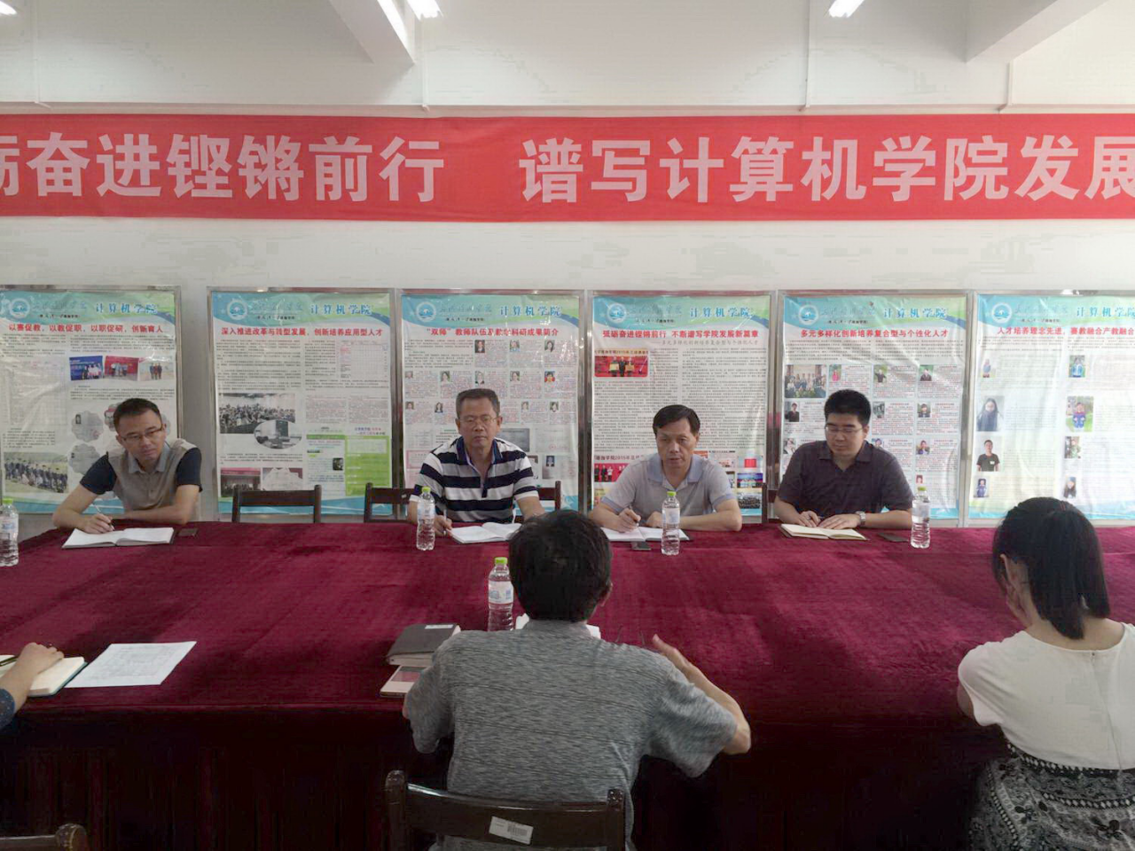 院长曹加恒教授以《着力内涵式改革发展,推进计算机人才培养质量不断攀升》为题,从学院的基本情况、学院转型发展思路/措施、学院如何办出特色(思考)、存在的困难及建议和计算机公共课部转型发展思路等五个方面进行了汇报。