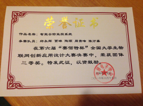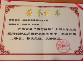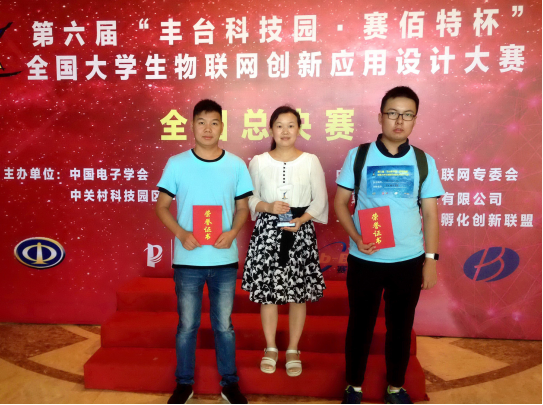 [本网讯] 2016“赛佰特杯”第六届全国大学生物联网创新应用设计大赛决赛于2016年8月17日-19日在北京举行,伟德体育由物联网工程系副系主任李芬副教授率领学生乔禹昂、陶顺分别代表两个学生团队参加决赛,经过参赛队作品答辩演示、综合汇审等过程的激烈角逐,在本科组全国二等奖名额共计30名的情况下,取得了荣获本科组全国团体二等奖、团体三等奖,并获得大赛组委会颁发的本科组二等奖奖杯的优异成绩。