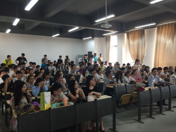 院长曹加恒教授、院办公室主任谷诚,辅导员江珊、陆梅、肖欣怡,各年级学生代表100多人,在教2-308室参加了学术讲座。