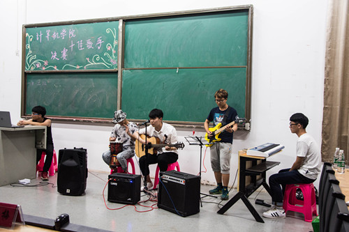 《你还要我怎样》、《问》、《山丘》、《Rolling In The Deep》等一首首歌曲让现场高潮迭起,异彩纷呈。一首《我真的受伤了》更是将比赛推向高潮,赢得了同学们热烈的掌声。比赛期间还穿插了一个小游戏,与观众们进行互动,同学们的积极参与舒缓了紧张的比赛气氛。评委计分期间有李凌宇同学带来的竖笛表演,笛声清脆悦耳, 清远悠扬。还有马晓龙同学的B-Box表演,更是让观众们欢呼不断。