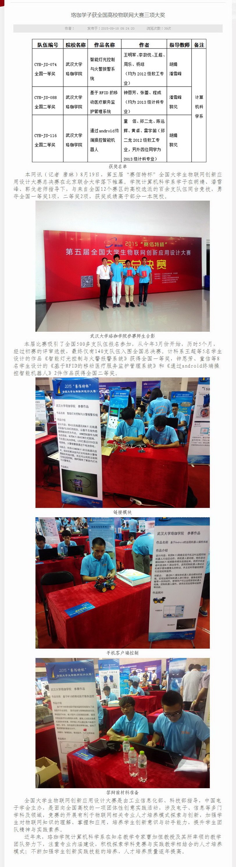 珞珈学子在首届“互联网+”创新创业大赛中获佳绩