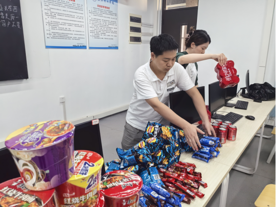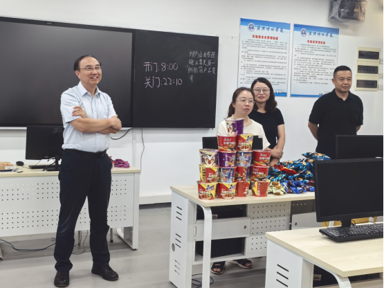 为给学子们加油鼓劲,学院提前精心准备了薯片、可乐、饼干、泡面等慰问品。当院领导们走进自习室时,同学们纷纷抬头,脸上露出惊喜的笑容。