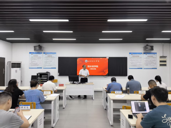 汇报中,院长黄传河围绕学院基本情况、主要举措、办学成效、现存问题与改进对策四大板块展开系统阐述。他指出,学院以“新工科”建设为引领,构建了“产教融合、赛教融合、工程实践驱动、岗位胜任力为导向”的人才培养体系,近年获省级一流专业2项、省级优秀省级教学团队1支,省级一流课程4门,省级教学竞赛奖9项、全国党建样板支部1个,近年来,学科竞赛累计获得国家级、省级奖项1100余项,在2024年教育部竞赛榜单中位列C+档、全国top24%。2025年竞赛榜单中位列B-档。
