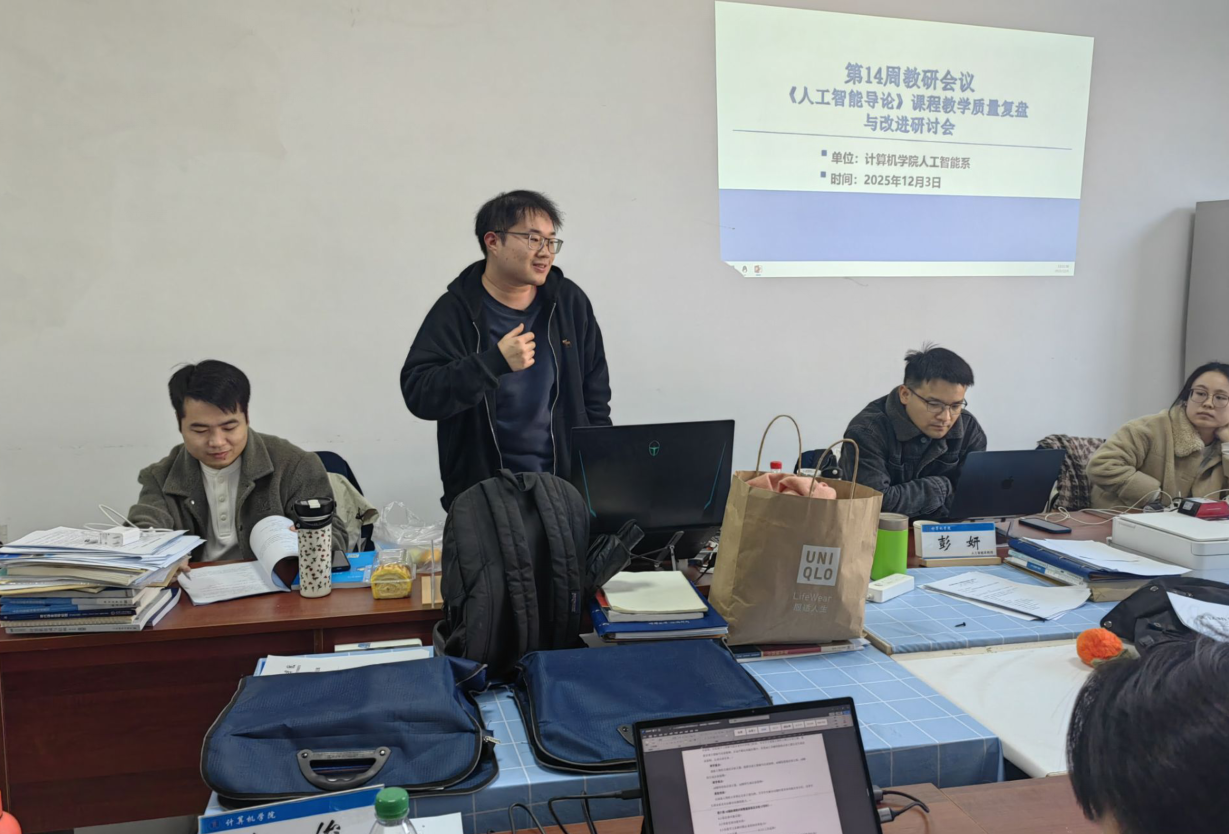 2025年12月3日,为响应2024版人才培养方案中“跨学科AI素养”的全新要求,切实强化《人工智能导论》这门全校性AI通识课程的建设质量,教学督导处与伟德体育人工智能系于综1-220联合召开课程改革研讨会。本次会议聚焦课程痛点精准发力,汇聚课程团队核心成员、各相关专业骨干教师及校教学督导共同参与研讨,旨在通过深度交流碰撞,为课程提质升级明确路径、凝聚共识。会议由人工智能系主任李珊枝教授主持,人工智能副系主任张倩副教授,宋俊、聂绩、彭妍、杨威、陈彦蓉、高武阳、黄亮、宋伸等教师出席,督导曾宪林教授全程参与并给予专业指导。